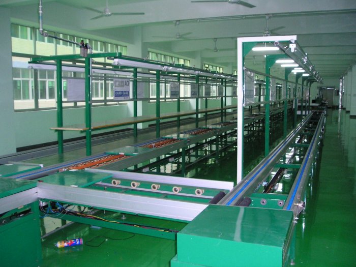 流水線又稱為裝配線,一種工業(yè)上的生產(chǎn)方式,指每一個生產(chǎn)單位只專注處理某一個片段的工作,以提高工作效率及產(chǎn)量;按照流水線的輸送方式大體可以分為:皮帶流水裝配線、板鏈線、倍速鏈、插件線、網(wǎng)帶線、懸掛線及滾筒流水線這七類流水線。一般包括牽引件、承載構(gòu)件、驅(qū)動裝置、漲緊裝置、改向裝置和支承件等組成。流水線可擴(kuò)展性高,可按需求設(shè)計輸送量,輸送速度,裝配工位,輔助部件(包括快速接頭、風(fēng)扇,電燈,插座,工藝看板,置物臺,24V電源,風(fēng)批等,因此廣受企業(yè)歡迎;流水線是人和機(jī)器的有效組合,最充分體現(xiàn)設(shè)備的靈活性,它將輸送系統(tǒng)、隨行夾具和在線專機(jī)、檢測設(shè)備有機(jī)的組合,以滿足多品種產(chǎn)品的輸送要求。輸送線的傳輸方式有同步傳輸?shù)?(強(qiáng)制式),也可以是非同步傳輸/(柔性式),根據(jù)配置的選擇,可以實現(xiàn)裝配和輸送的要求。輸送線在企業(yè)的批量生產(chǎn)中不可或缺。